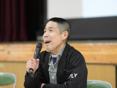 自身の作品と活動を紹介した後、生徒たちと自分の好きなものを