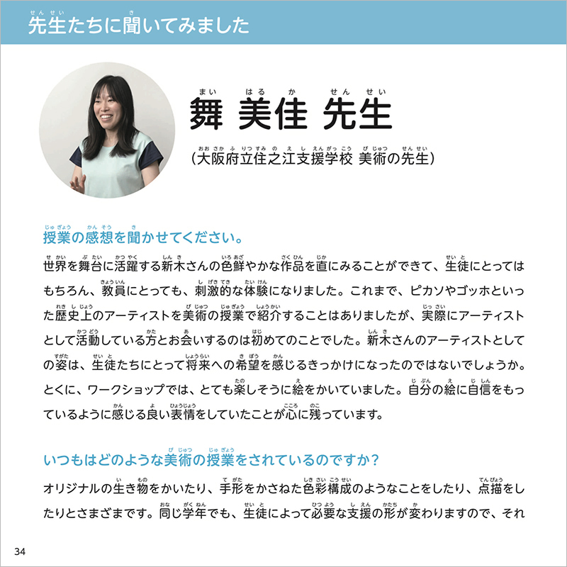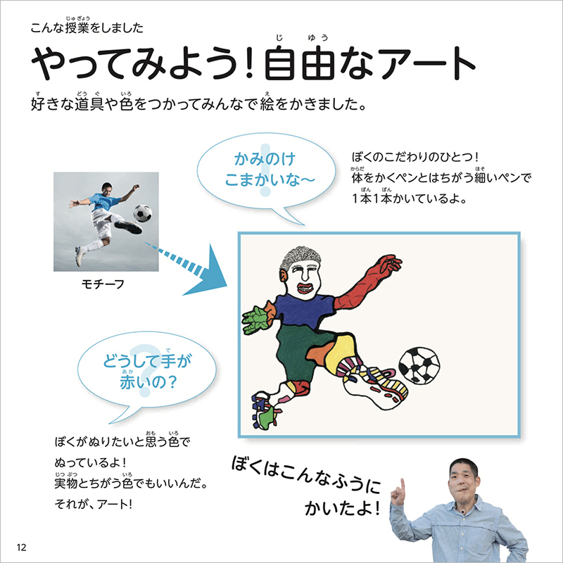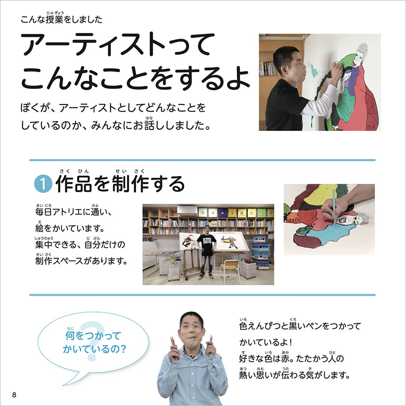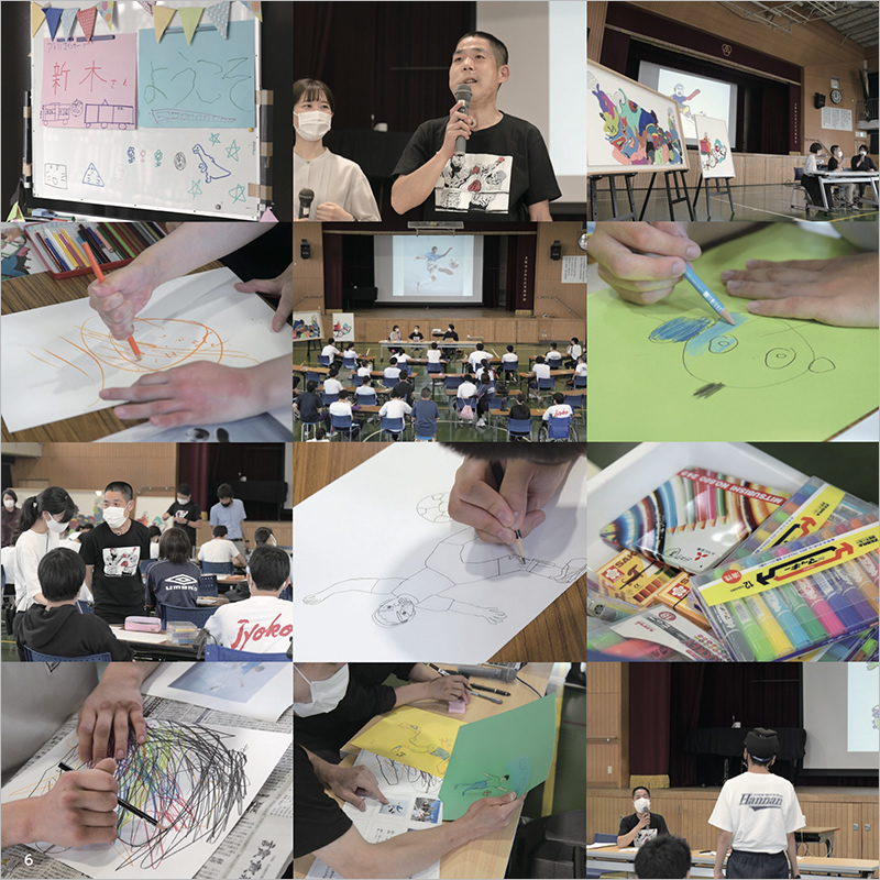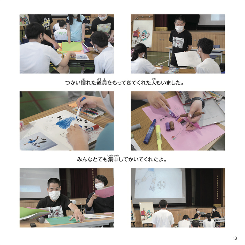 アトリエ インカーブのアーティスト・新木友行さんが支援学校でおこなった授業の様子を