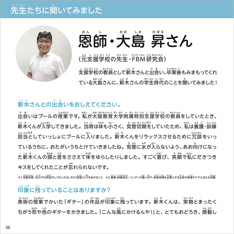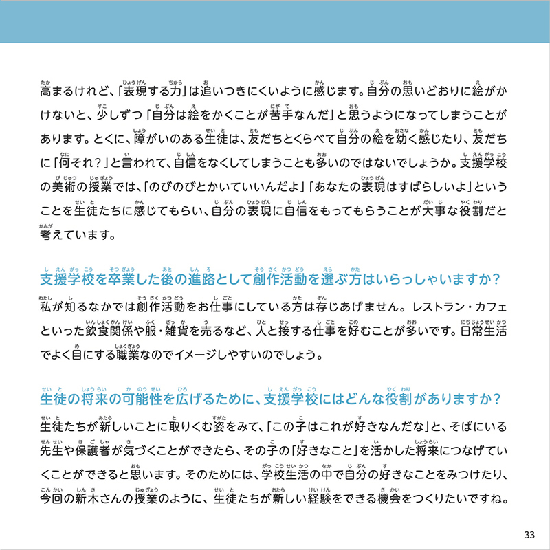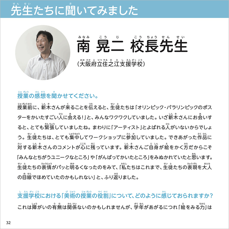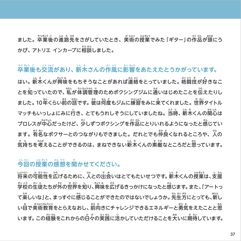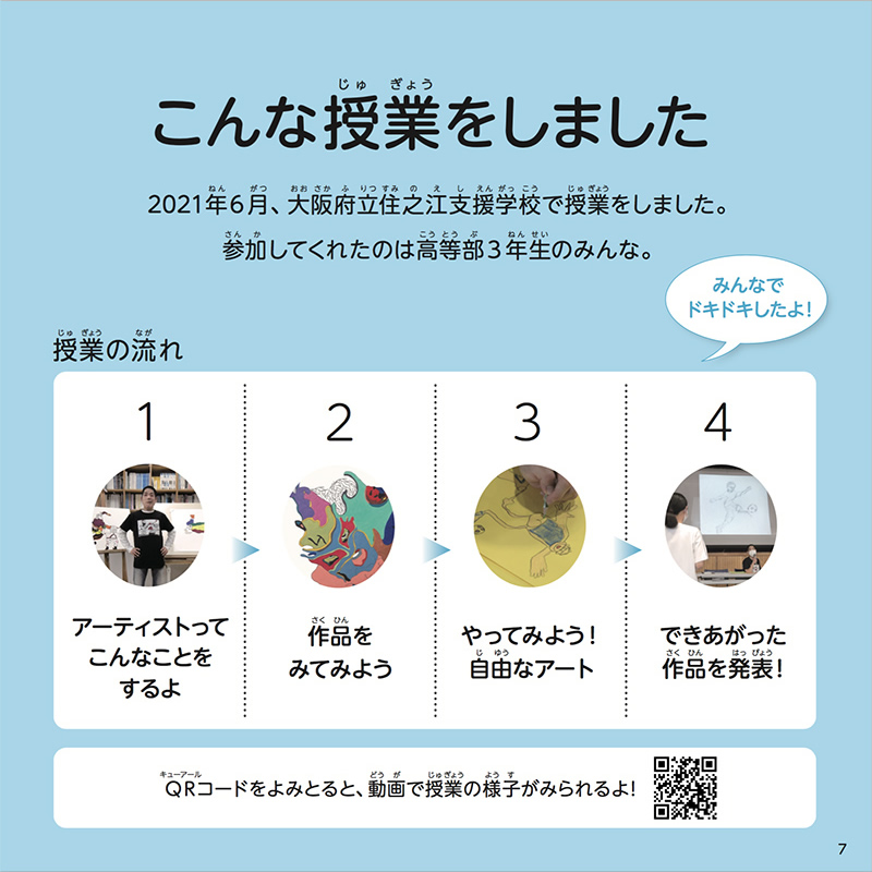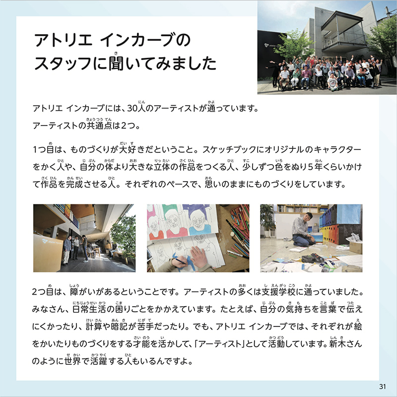 アトリエ インカーブのアーティスト・新木友行さんが支援学校でおこなった授業の様子を